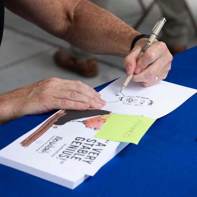 Some of Mike Luckovich’s fans got signatures and a special treat of a image of themselves; this was Howard’s…! photo by Richard Philips (Decaturish)